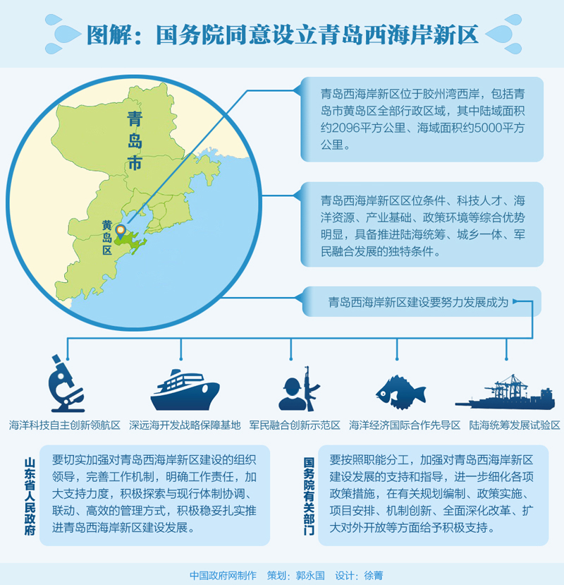 批復(fù)時間:2014年6月,國務(wù)院同意設(shè)立青島西海岸新區(qū)。