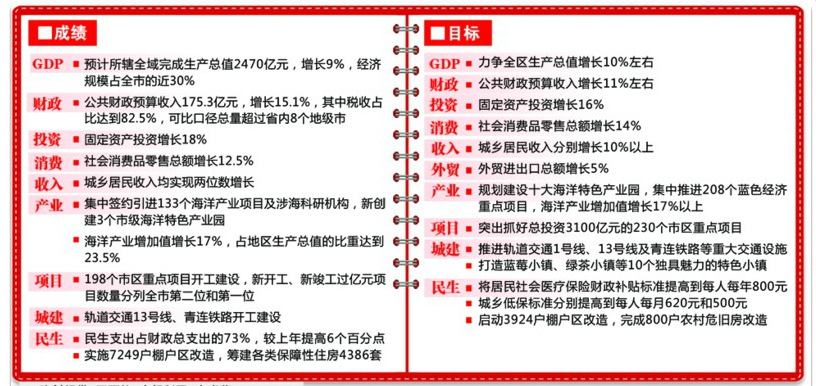 過(guò)去的一年,是西海岸新區(qū)承接新使命、應(yīng)對(duì)新挑戰(zhàn)、實(shí)現(xiàn)新發(fā)展的一年。該區(qū)抓住和用好國(guó)家級(jí)新區(qū)獲批的重大機(jī)遇,集中謀劃推出了一批重大改革舉措,突破落實(shí)了一批戰(zhàn)略支撐項(xiàng)目,妥善處理了一批急難復(fù)雜問(wèn)題,用心辦成了一批惠民利民實(shí)事,經(jīng)濟(jì)社會(huì)發(fā)展取得來(lái)之不易的成績(jī)。當(dāng)年,新區(qū)承接了88項(xiàng)改革試點(diǎn)任務(wù),負(fù)面清單、責(zé)任清單、政策清單、權(quán)力清單(“四張清單”)加快建立,依法率先取消社會(huì)投資類項(xiàng)目前置審批,政府投資類項(xiàng)目審批提速80%以上;制定了產(chǎn)業(yè)發(fā)展“十大政策”,下放69項(xiàng)行政審批權(quán)限,支持各大功能區(qū)先行先試、放開搞活;董家口循環(huán)經(jīng)濟(jì)區(qū)累計(jì)建成泊位21個(gè),實(shí)現(xiàn)貨物吞吐量9000萬(wàn)噸,青鋼環(huán)保搬遷、雙星綠色輪胎等項(xiàng)目順利推進(jìn),中石化首個(gè) LNG接收站建成運(yùn)營(yíng);加快構(gòu)建“主城區(qū)—特色街鎮(zhèn)—新型社區(qū)”現(xiàn)代城鎮(zhèn)體系,泊里小城市、王臺(tái)小城鎮(zhèn)和10個(gè)特色小鎮(zhèn)建設(shè)協(xié)調(diào)推進(jìn);全面推行信息化、網(wǎng)格化管理服務(wù),構(gòu)建起“大安全、大城管、大信訪、大穩(wěn)定”社會(huì)治理新體系。