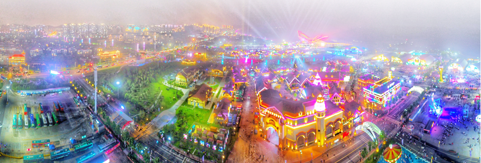 ▲流光溢彩的金沙灘啤酒城夜景。記者 李亮 報道