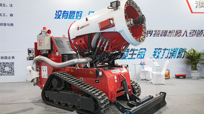 在無人直升機(jī)旁邊,一個(gè)“大塊頭”也被不少人圍觀?!斑@是第一次亮相展會(huì)的霧炮消防滅火排煙機(jī)器人?!眲l(fā)德告訴記者,該機(jī)器人是一款集滅火、排煙和偵查功能于一體的多功能消防機(jī)器人,其帶有的多種噴水模式,能夠適用于不同情況下的滅火,可以快速移除火中熱量并降低溫度,從而實(shí)現(xiàn)滅火和排煙功效。